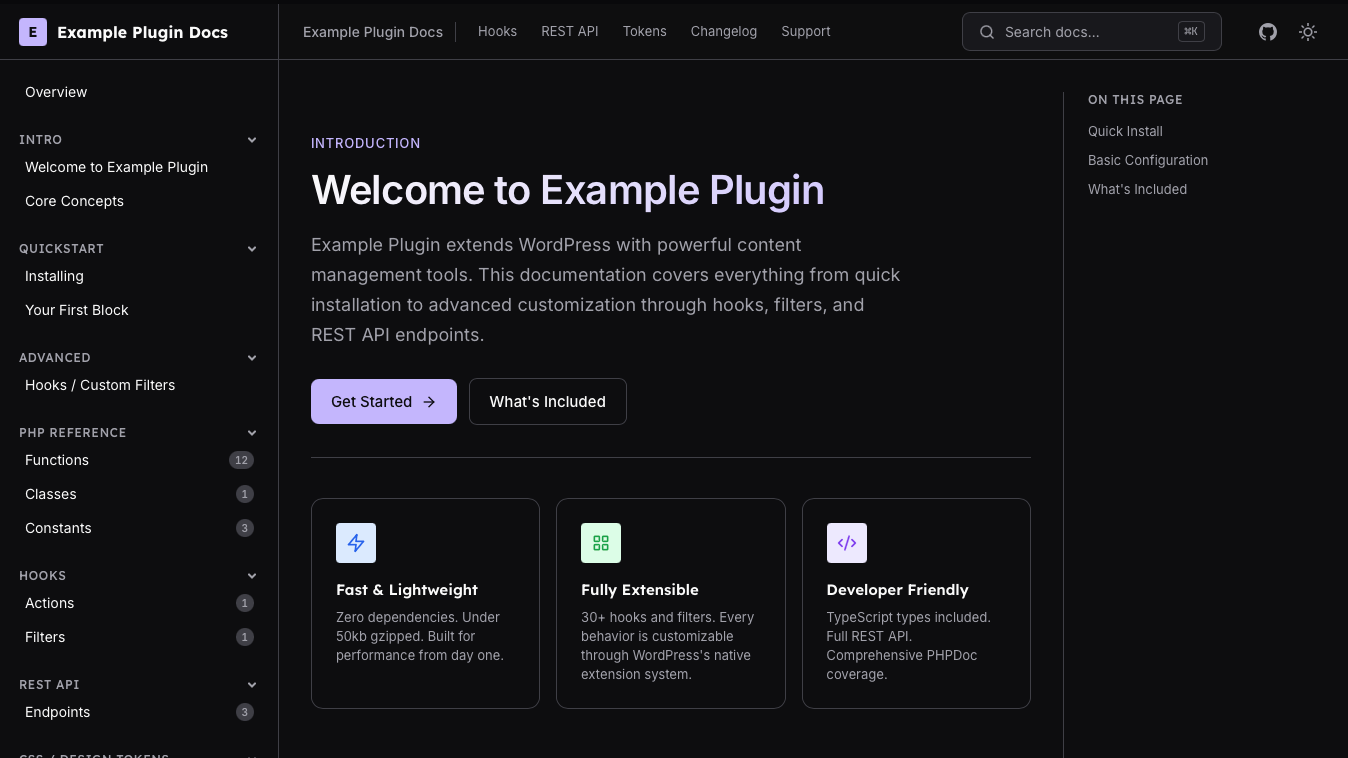 A CLI tool that parses WordPress plugins and themes — PHP classes, hooks, filters, REST endpoints, block templates, and generates a searchable Next.js documentation.